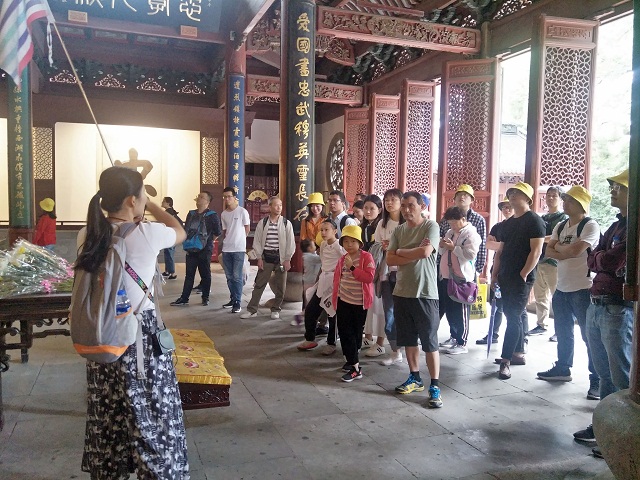 青石鋪成的甬道,參天的古木,屋檐正中懸掛的“岳王廟”三個大字莊嚴(yán)巍峨。大殿的正中,身著紫色蟒袍的岳飛塑像,友高人仔細(xì)聆聽關(guān)于岳飛生平的介紹,讓友高人接受到了愛國主義教育,學(xué)習(xí)岳飛精神。