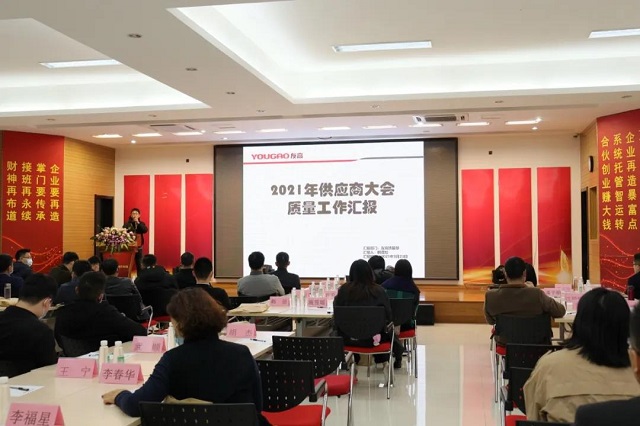 他提到,質(zhì)量是一切的基礎(chǔ),沒有質(zhì)量更談不上企業(yè)的品牌、發(fā)展、競爭。友高一直高度重視產(chǎn)品質(zhì)量問題,并對此設(shè)定了質(zhì)量目標(biāo),管控要求等;結(jié)合以往的供應(yīng)體會,他現(xiàn)場還分享了一些個(gè)人的質(zhì)量管理經(jīng)驗(yàn),倡導(dǎo)大家在“誠信”的基礎(chǔ)上,把好任何一件產(chǎn)品,一個(gè)零部件的質(zhì)量關(guān),實(shí)現(xiàn)合作共生,以此更好成就客戶。