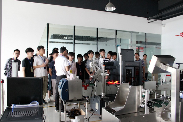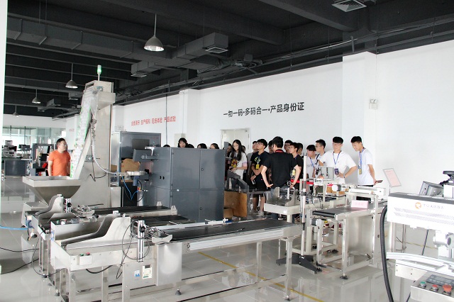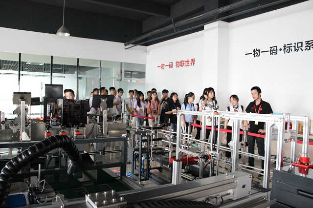 在物聯(lián)網(wǎng)標識行業(yè)應用實驗中心,工作人員為同學們逐一介紹現(xiàn)場的每一款產品,從前端賦碼到“三期”檢測再至掃描關聯(lián),一系列一物一碼的各類應用設備,引起了同學們極大的興趣,工作人員通過現(xiàn)場演示,讓大家更加直觀的了解友高2.0時代的產品。