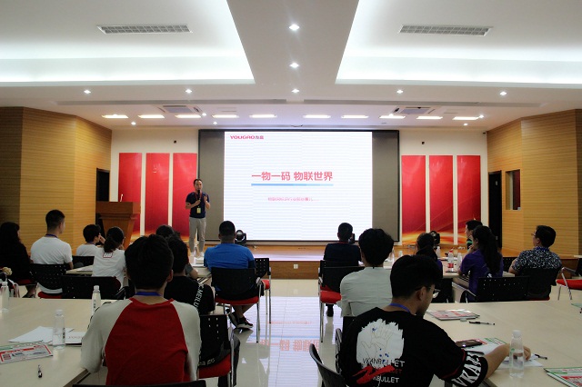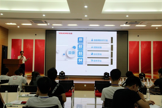 今年是友高公司成立20周年,為了讓學生們更加深入的了解友高,了解物聯(lián)網(wǎng)標識行業(yè),友高公司行業(yè)總監(jiān)汪正以《一物一碼,物聯(lián)世界》為題,介紹了友高公司專注現(xiàn)場標識系統(tǒng)20年的發(fā)展歷程,從傳統(tǒng)的1.0產品到以一物一碼為主的2.0時代,從實體+行業(yè)的“兩條腿”走路到具有多行業(yè)優(yōu)勢的一物一碼解決方案豐厚經驗,他都做了呈現(xiàn)與展示。