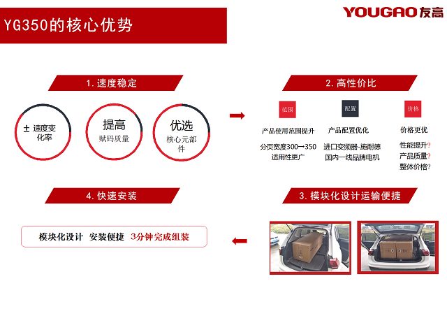 合肥友高緊緊抓住分頁機的痛點,并針對分頁機進(jìn)行革新,以期為客戶更好的服務(wù)。對于此,合肥友高進(jìn)行產(chǎn)品升級,YG350應(yīng)運而生。