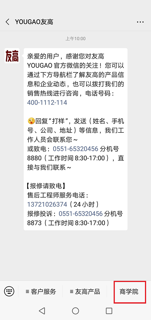 第一步:微信掃碼關(guān)注友高服務(wù)號(hào)