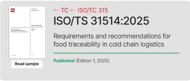 2025年11月4日,由中國(guó)聯(lián)合新加坡共同牽頭制定的《冷鏈物流中食品可追溯性的要求和建議》(ISO/TS 31514:2025)正式由國(guó)際標(biāo)準(zhǔn)化組織(ISO)發(fā)布。